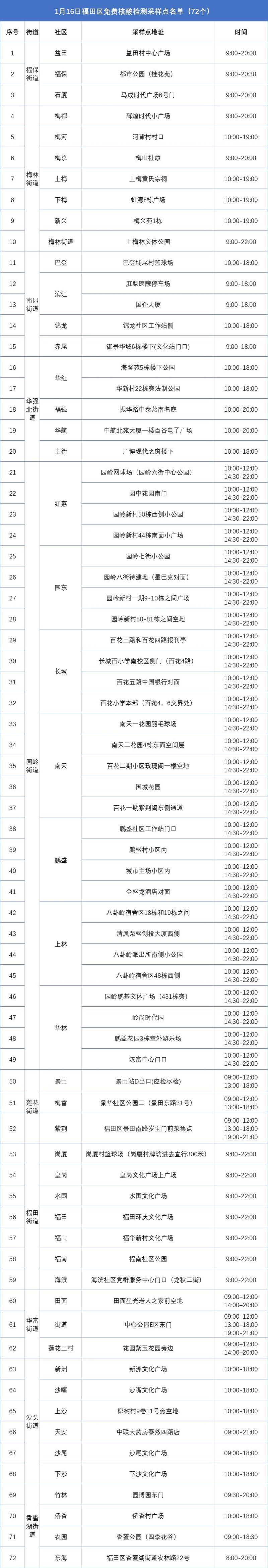1月15日深圳无新增病例!今日福田免费核酸检测采样点名单速戳
