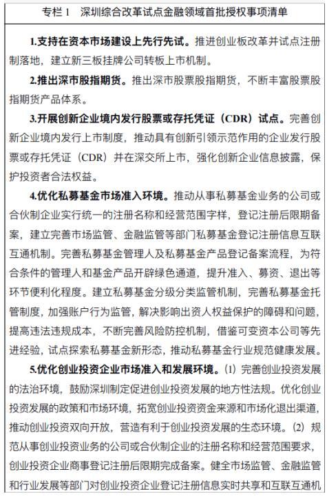 小编注意到,规划提出深圳将积极创建国家绿色金融改革创新试验区、国家科创金融改革创新试验区与国家文化与金融合作示范区。