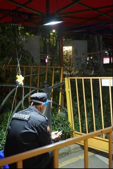 同样是晚10点,莲花街道康欣社区景蜜公园核酸检测点,本应到了收尾阶段,但陆陆续续还有居民前往核酸检测。莲花街道康欣社区的工作人员周萌一边协调医护人员,一边进行核酸检测引导工作。“一到晚上,思绪很多,可能这是都市人的共性吧,”她笑着回答,“如果让我回想一下的话,今天记忆最深刻的是一位叫做左可洋的小暖男”。