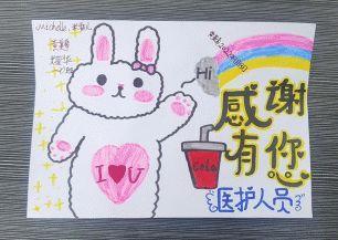 与任思齐想法相同的少年,还有一年级的黄美希和同龄的小暖男左可洋。“医生你们辛苦啦!我画的画送给你们,给你们加油!”在孩子的画中,世界是由童话组建的,紫荆社区的黄美希将自己比喻为小白兔,画中带着最喜欢喝的可乐为医护人员送去彩虹和感恩。