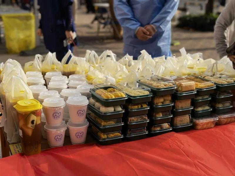 ▲金阳盛党支部为一线抗疫工作人员送上咖啡、糕点等“冬日温暖”
