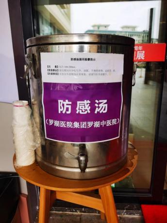 为充分发挥中医药的调养、防病功能,罗湖区中医院院长、省名中医吴红彦教授结合深圳今年的气候特点改进研制了新型防感汤剂。在此基础上,医院连日来不间断地为一线抗疫人员和辖区部分居民派送防感汤,支援疫情防控工作。