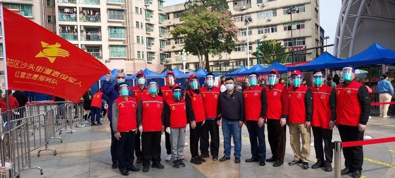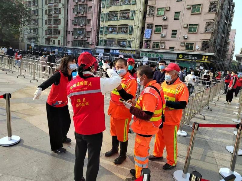 不知道有没有人注意到,自1月7日深圳开展大规模核酸筛查工作以来,一面印有“福田区沙头街道退役军人红星志愿服务队”的旗帜插遍沙头街道辖区的各个核酸检测点。旗帜下活跃着一群穿红马甲的退伍军人,黄国成是其中一员。