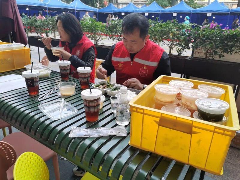 # 饭点到了,他对工作人员说:“你们上我这儿来吃饭,免费供应。”得知沙头街道每个工作点有人专门负责后勤,餐食早就定好了,他没出上力,有些遗憾。