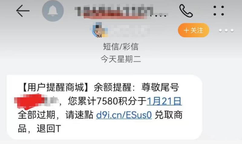 第一点:收到积分兑换的短信,即便是自己熟悉的客服号码发来的短信,也不能轻易相信。