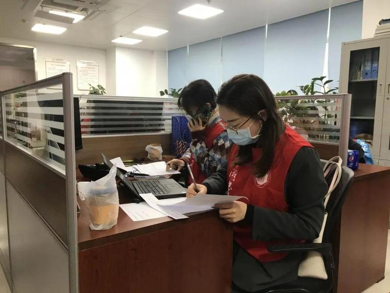 在罗湖区清水河梅园社区党群服务中心二楼,红桂中学德育处主任温艳一边梳理桌子上的表格信息,一边耐心说服手机那头的居民。