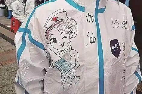 后来在大家的建议下,大芬美术馆准备一些画具并构思了一些相关的图案和内容,开始用画笔在每件防护服上给连轴转的医护人员和工作人员画上他们心仪的图案,参与画画的还有大芬美术馆展览部负责人卢伟旋、行政部负责人巫惠慧等,他们用自己所学的美术及设计相关的知识,用绘画的方式给辛苦的医护和工作人员带来了新的视觉体验,让大家有更好的心情,积极的投入到防疫工作中去。
