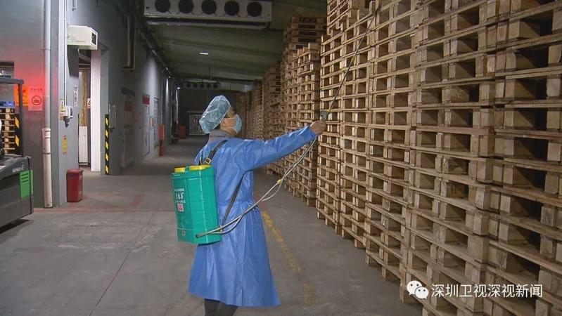 在光明区最大的仓储冷库,每天有超300吨进口冻品入出库,企业落实防控主体责任,在作业区域划分清洁区、半污染区和污染区,并同时做好配套设备设施每日消毒工作。货品入库后还要进行分拣、划分境外货物专区,并再次进行消毒,同时做好园区场地消毒等措施。