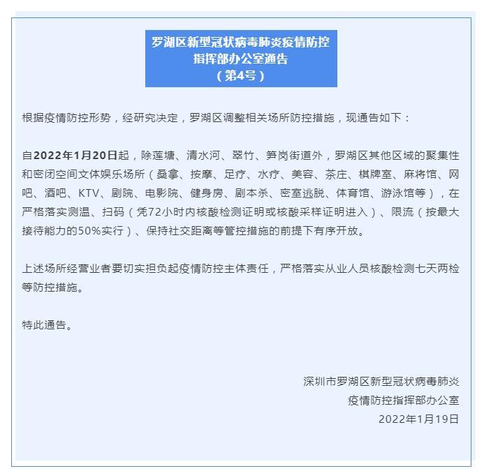 昨日罗湖区发布通告,除莲塘、清水河、翠竹、笋岗街道,罗湖区其他区域密闭公共场所有序开放,凭72小时核酸检测证明或核酸采样证明进入。