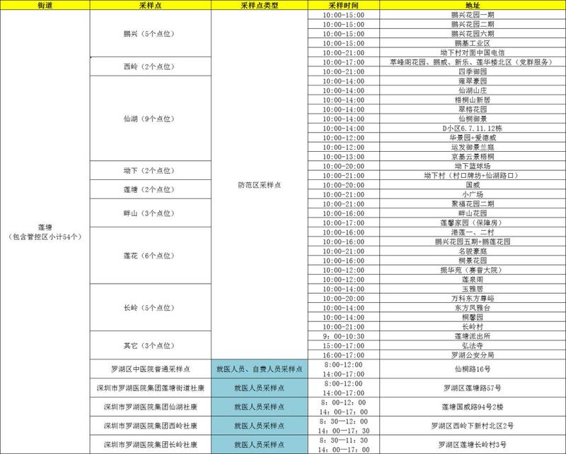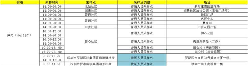 罗湖区核酸检测采样点