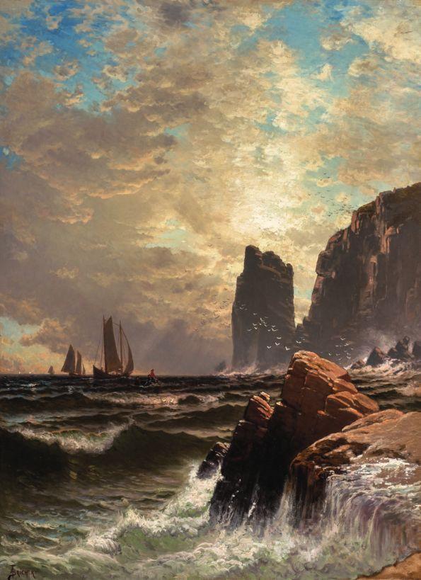 第三幅画是英格兰裔画家布里彻创作于 1882 年的《大马南岛》,画面非常有气势,是美国人学习欧洲风景画后创作的典范型作品,完美地体现了“崇高”的浪漫主义气质。