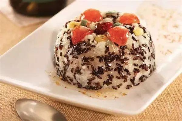 八宝饭是中国传统名点,流行于全国各地,江南尤盛。各地的配方大同小异,基本上是把糯米蒸熟,拌以糖、油、桂花、倒入装有红枣、薏米、莲子、桂圆、等果料的器具内,蒸熟后再浇上糖卤汁即成。味道甜美,是节日和待客佳品。