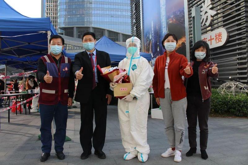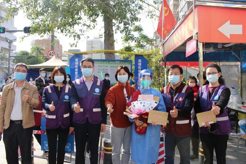 1月19日起,罗湖区卫生健康局二级调研员朱丽桂、刘岭,局工联会副主席汪莉一行前往慰问核酸采样队伍,以及疾控、检验、转运、流调(包括15支外援队伍)处置团队,向他们表示衷心感谢和崇高敬意,并送上慰问品和感谢信,在清水河封(管)控区,区委副书记、区委政法委书记黄生文、清水河街道党工委书记魏刚、办事处主任宫雪参与慰问。
