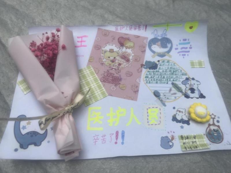 “通过几天的上门采样,很多居民也很熟悉我们了,都很有礼貌感谢我们,会说辛苦了,还有很多热情的居民看采样员面屏雾化流水就主动送纸、笔写不出字就送笔、额温枪电池找不到立马主动拿个新的电池、听到采样员说饿了,就有说要送水果,叫工作完一起吃饭的。还有封控区里的小朋友自发创作漫画送给医护人员加油鼓励,从当初的害怕采样转变成主动在门口等待温柔的采样医生姐姐。居民回报暖心行为感动了我们医务人员,想不到要被隔离的居民还能那么热情对待我们。”——封控区采样员