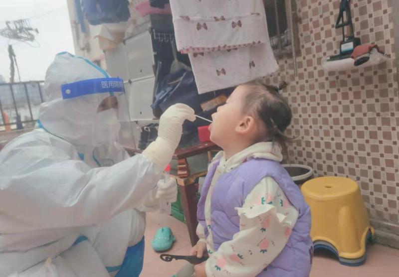 1月11日至18日期间,全体医护人员日以继夜连续采样8天,穿梭于63栋封控楼栋间,每天采样近3000人,共采样2万多人次。