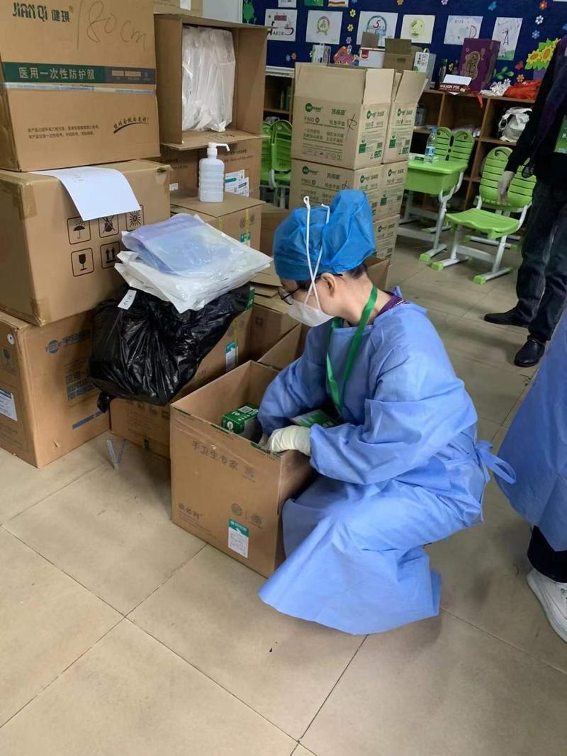 心理科全科女生全力支持后勤保障科,一起搬运清点物资