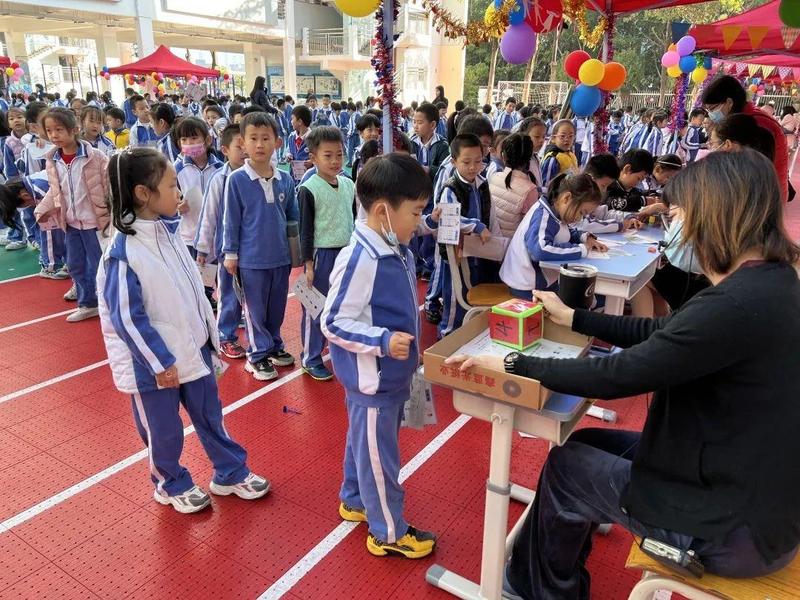 活动当天,学校在运动场设立八个项目摊位,学生按顺序依次游玩八个摊位,每位学生持有集星卡,考官以盖章的形式当场对学生进行评价。游园闯关评价活动让学生在游戏中完成考核评价,在快乐中提升学习能力与学习兴趣。