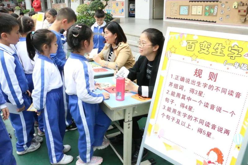 龙岗区实验学校一年级举办了“游园大闯关”活动,让孩子们怀揣知识尽情畅游!语文闯关游戏种类丰富,包括有识字乐园、音节拼读、朗诵高手、背诵能手、生字魔术等十二个闯关项目,几乎囊括了一学期语文学习所有的知识点。