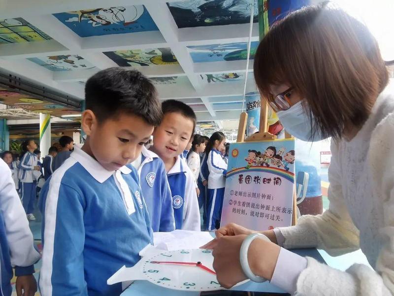 为落实“双减”政策,保安学校一二年级制定了以“快乐学习,轻松闯关”为主题的游园闯关系列评价活动,活动包含“拼读小达人”“我会认钟”“博雅园里有什么”“惟妙惟肖——我会演”“中国梦 太空游”等项目。
