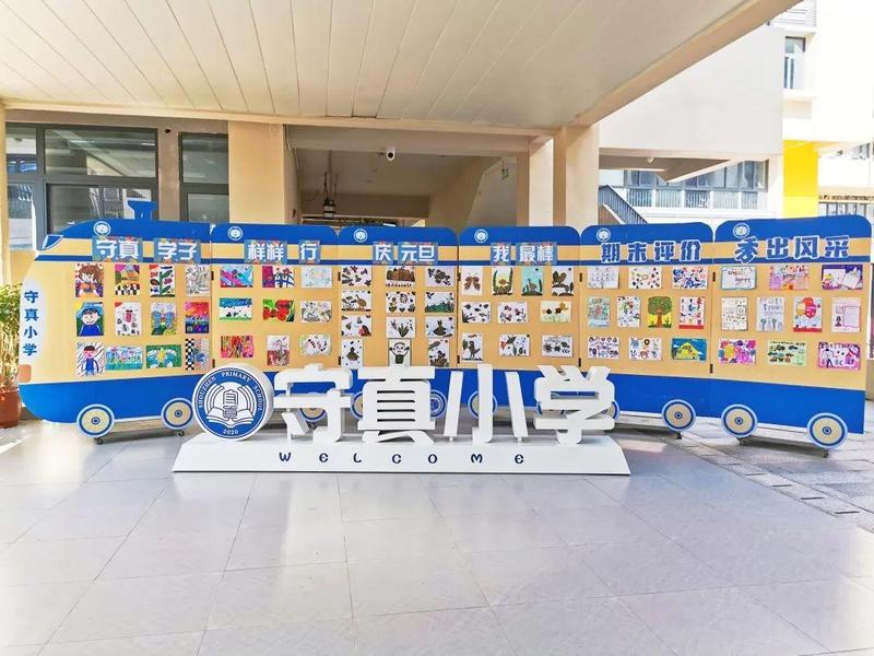 1月4日,守真小学“主题项目式展示评价”学生作品集在守真小学二楼小平台展览,树叶贴画、纸灯笼、纸帽子、创意海报,还有其他各色精美的手工艺品……来自全校学生的学期末主题项目实践作品进行展出,形成了守真小学一道亮丽的风景线。