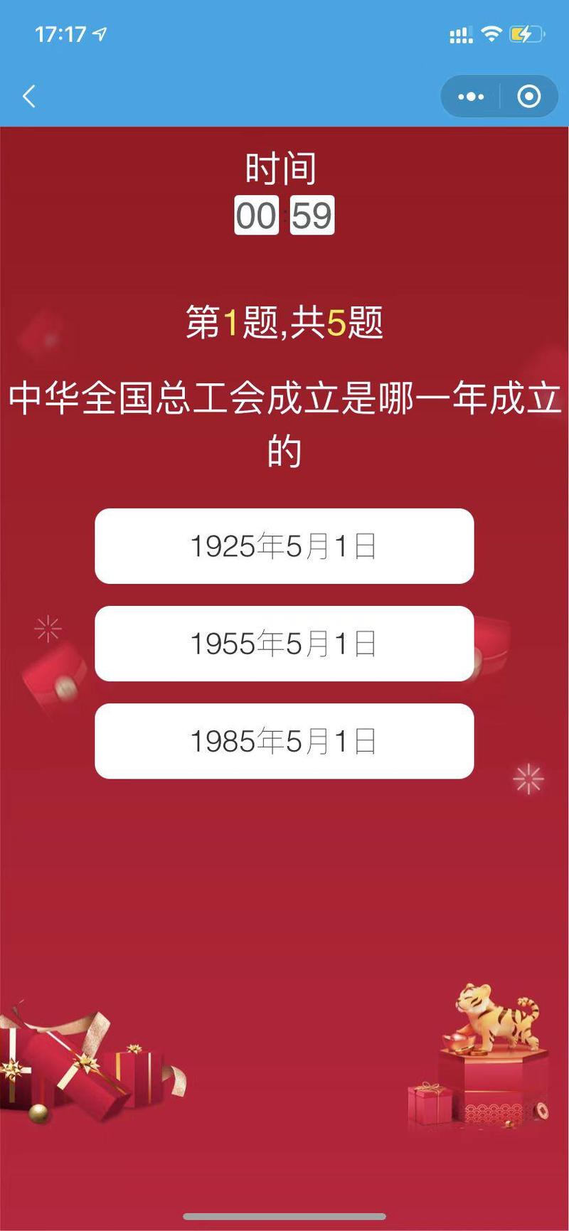 4. 共有5道题,答对3道即可参与抽奖,每人每天有2次抽奖机会。