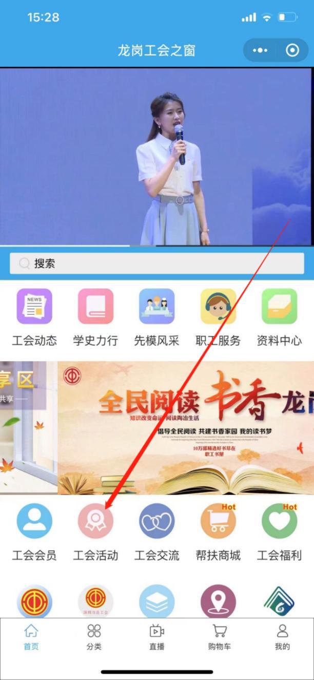 1.微信搜索“龙岗工会之窗”小程序或通过下方二维码进入“龙岗工会之窗”小程序。