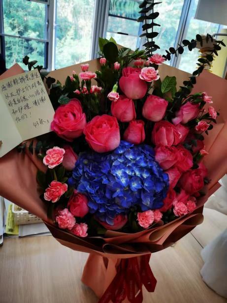 一位86岁的高龄老人不甚摔伤,在骨伤三病区脊柱骨科接受治疗后伤病痊愈,可以出院回家过年了。在老人准备出院的这天,子女为表达感激,为医护人员送上了鲜花,锦簇的鲜花与感激的笑容,让医护人员倍感欣慰。