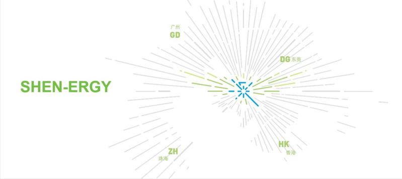 2011年,刚来深圳不久,我做了这样一个设计,这是深圳的“深”字,中心发散的点,那时候还没有大湾区,我想通过这样一个图想表达深圳未来是珠三角中心发散的力量,英文就是“SHEN-ERGY”。