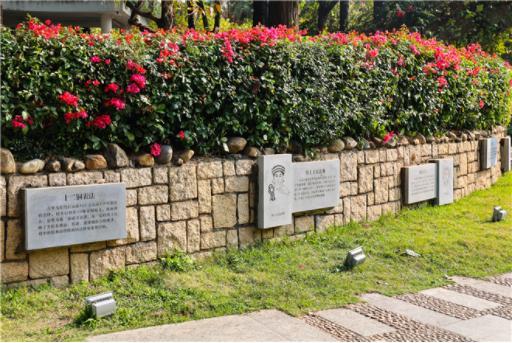深圳宪法公园与中英街仅有百米之隔,园内还设有香港基本法专区。这个专区采用格栅打造山河造型,围着座椅环绕⼀圈的设计,强调香港特别行政区是中华人民共和国不可分离的部分,并结合香港特别行政区区旗图案与旗帜飘扬造型打造了宣传栏,栏内展示着《中华人民共和国香港特别行政区基本法》的内容。