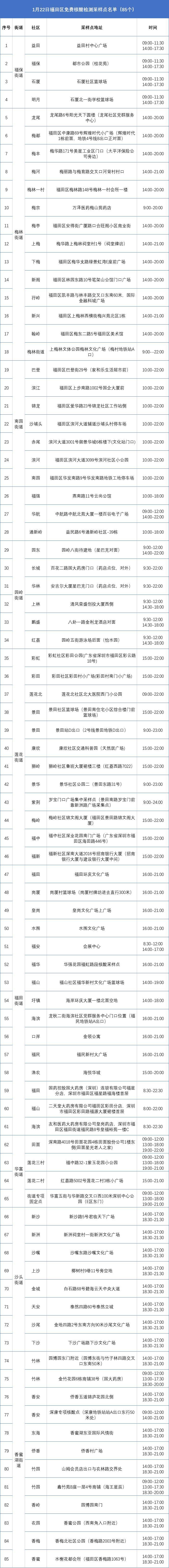 定了!1月22日福田区这85个采样点可免费测核酸→