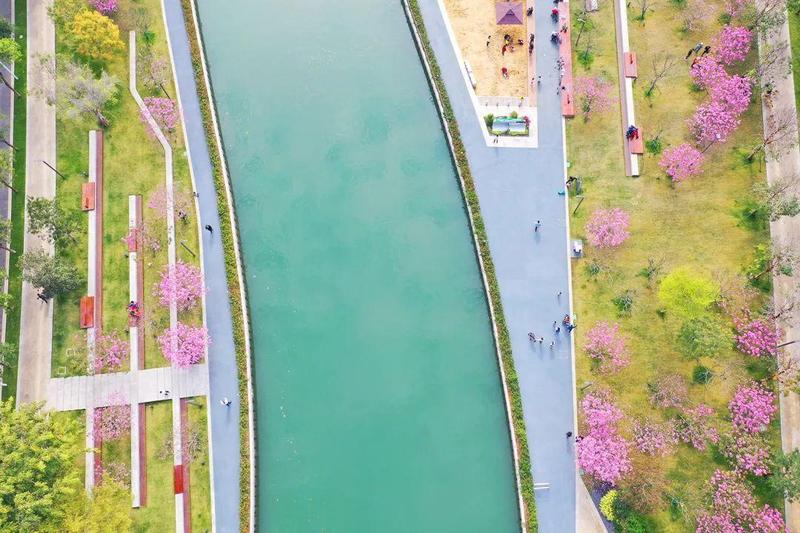 2022第一抹春色上线!中心河紫花风铃木绚烂绽放~