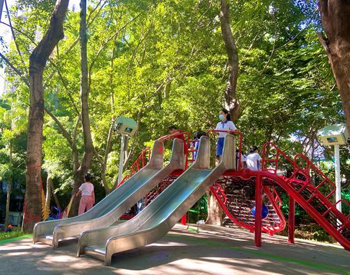 这是罗湖区首个儿童友好型社区公园,2021年7月投入使用。通过小微空间改造,公园增加户外滑梯、沙池、秋千、光影小品等游乐设施,备受孩子和家长的欢迎。
