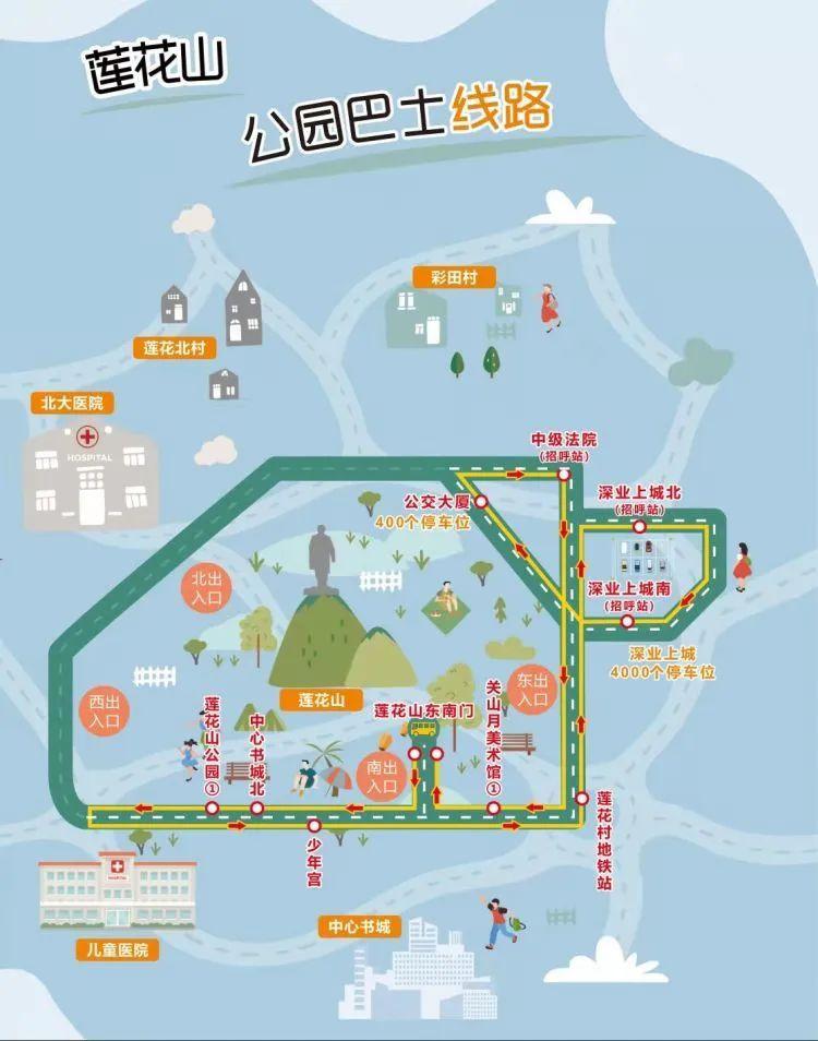 市公园管理中心联合深圳巴士集团在莲花山公园、深圳湾公园和中心公园开通公园巴士,还将站点设置在公园内线路联通社区和商圈。