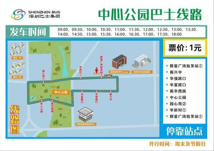 中心公园巴士的首末站设在群星广场,线路将中心公园和华强北商圈进行联通。