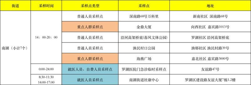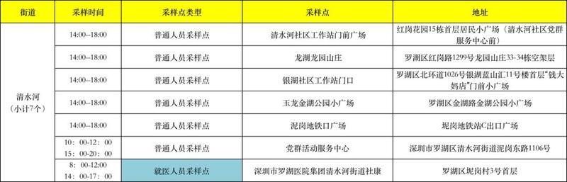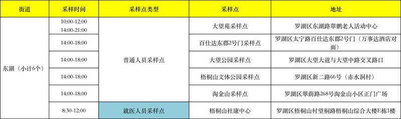 罗湖区核酸检测采样点