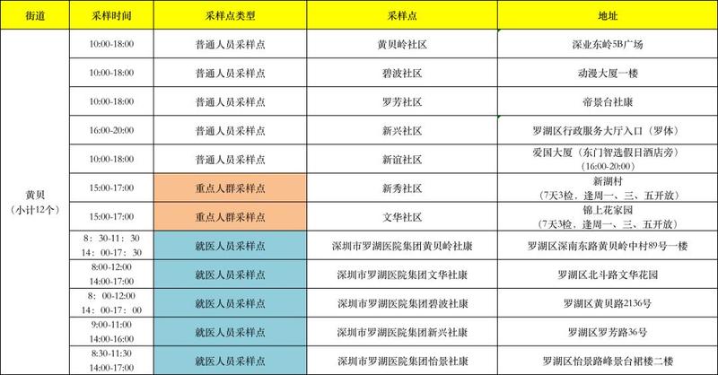 罗湖区核酸检测采样点