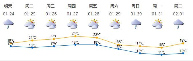 深圳1月26-29日多云间晴天;30日起有明显冷空气影响,转阴雨天气,气温下降。