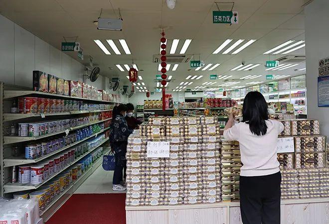 “我们店内卖的最好的是巧克力、坚果这些应景年货,每一个品种都备了上百箱,春节临近,我们一些商品已经开始打折售卖,比往年的折扣时间提前了不少。”