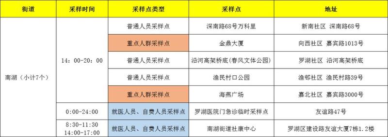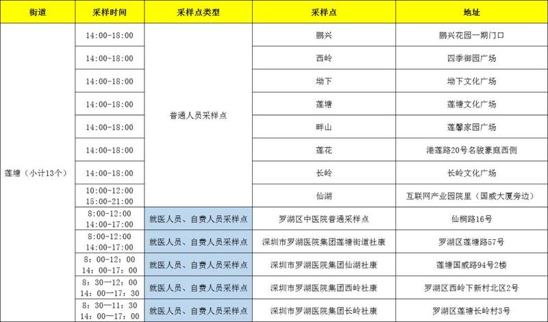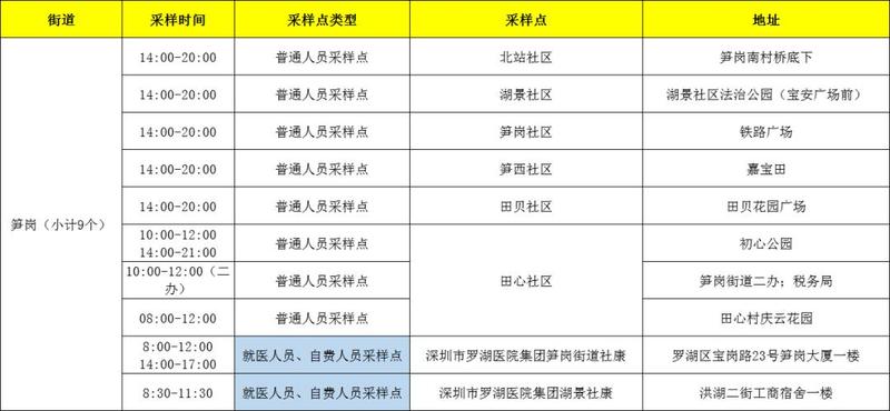 罗湖区核酸检测采样点