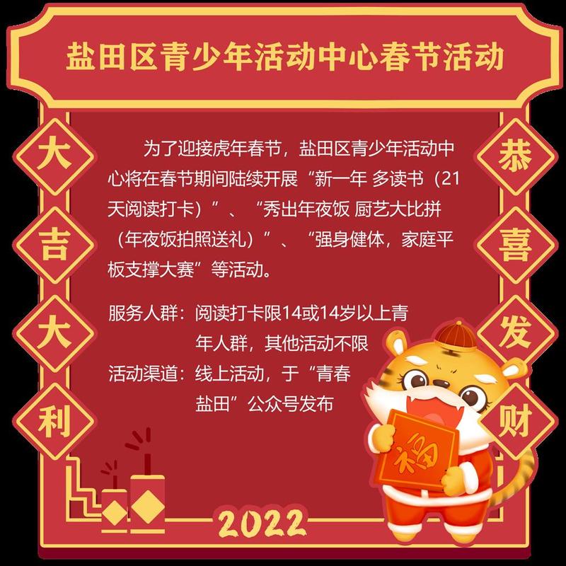 过年除了开心,也不能忘了锻炼身体,这样才能有效抵御病毒。盐田团区委、区青少年活动中心将为大家带来一场线上的平板支撑大赛,看看谁能在比赛中“虎虎生威”!