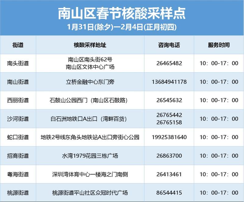 疫情防控 | 春节不放假!南山核酸检测采样点名单请查收