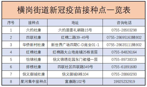 横岗街道新冠疫苗接种点