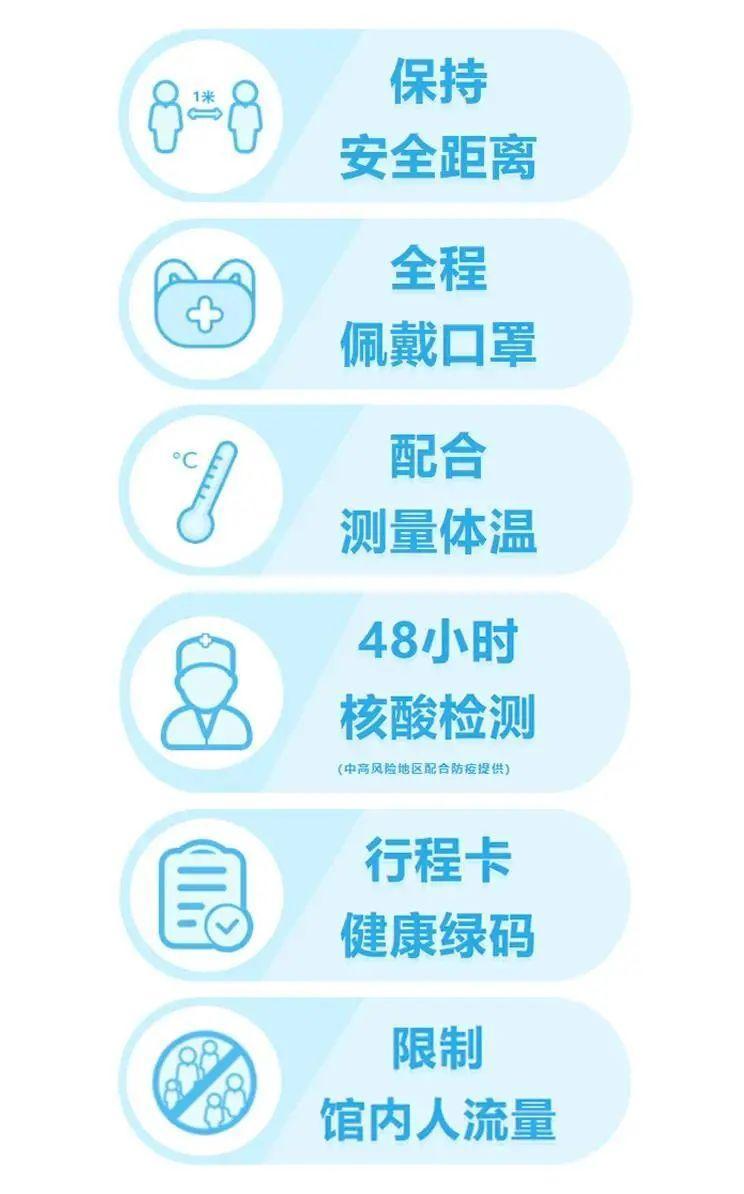 感谢大家配合,做好上述防疫准备,开展期间展馆会对所有工作人员健康状况进行筛查,并每日定时对馆内进行清洁消毒,请放心参观。