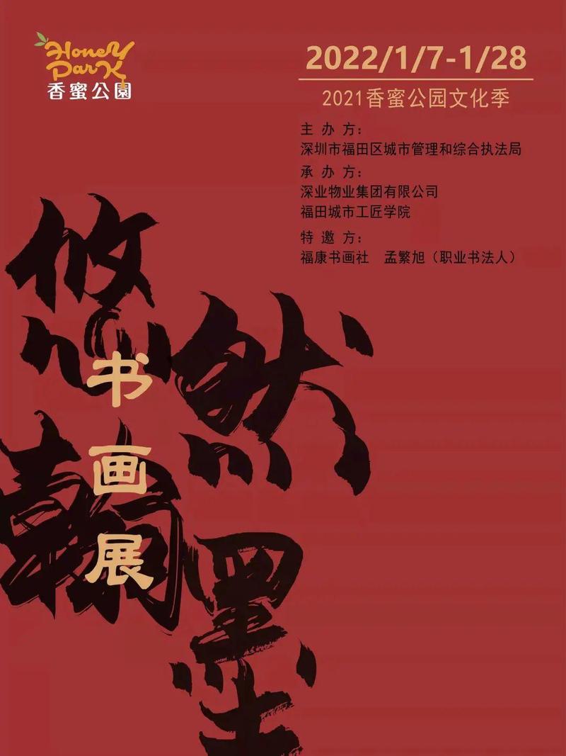 “悠然翰墨”书画展于2022年1月7日-2022年1月28日在香蜜公园艺术编织广场南部栈道下方展开,本次活动围绕春节的传统习俗展开,引用古今多样的书画技术、传统的手工艺技术、儿童稚嫩的绘画技术来体现春节文化随着历史演变形成的丰富性、多元性,主要展示深圳市民心中多样化的春节记忆、多元化的春节习俗,加强市民留深过年的意愿。