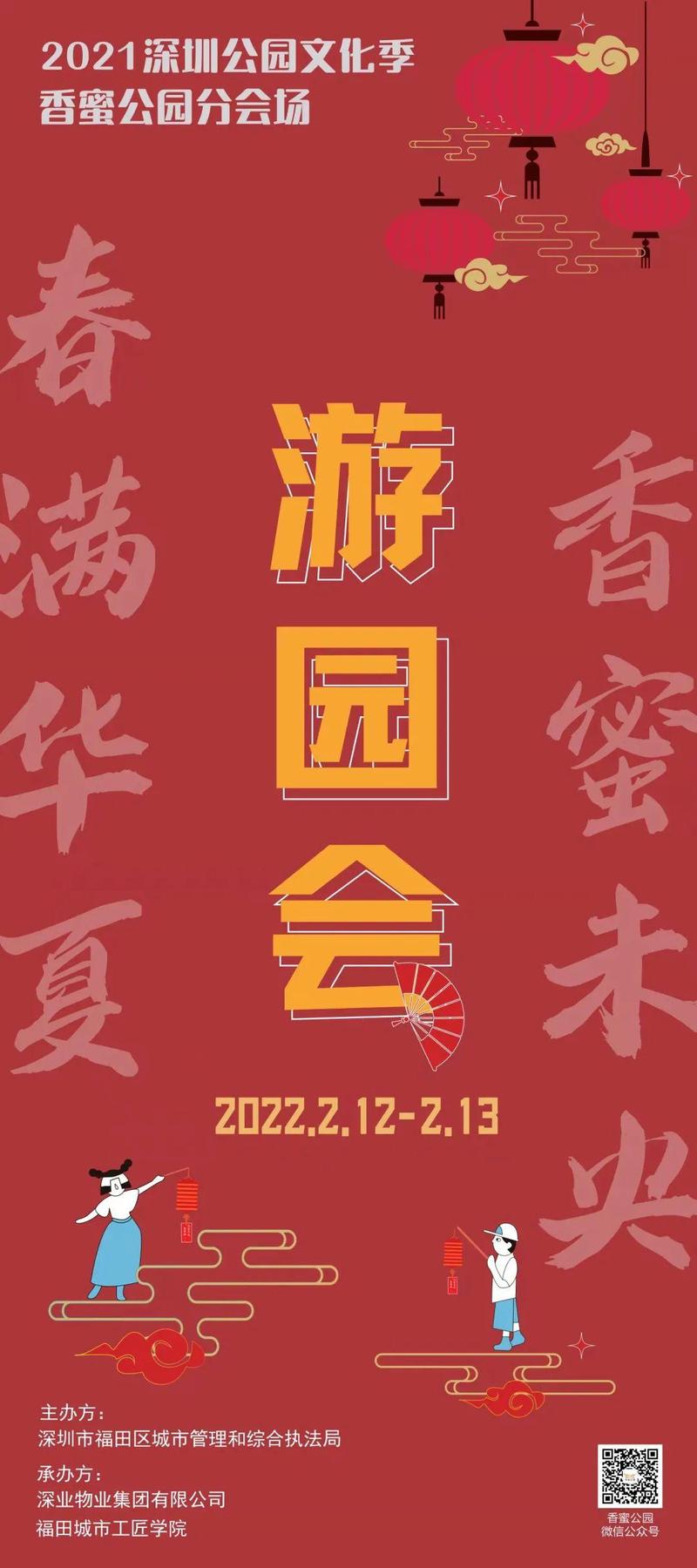 过年期间香蜜公园将在椰林大道举办“香蜜未央”游园会及“花好月圆”灯谜会,营造古代灯会的集市氛围,活动内容形式多样,有现场互动游戏,灯谜会游客可凭借对应灯谜编号到活动摊位对谜底,答对可兑换奖品,增加与游客的互动。