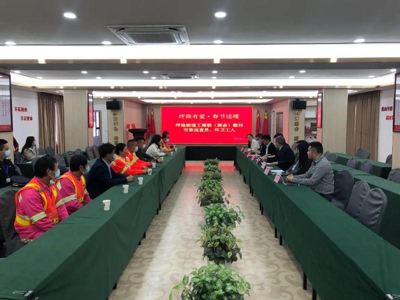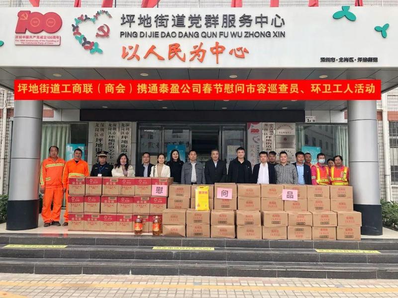 1月21日下午,2021年下半年坪地街道市容环境提升“巡查标兵、城市美容师”表彰大会暨坪地街道工商联(商会)春节慰问活动在坪地商会功能楼三楼会议室举办。会上对表现突出的40名市容巡查员及110名环卫工人进行表彰,授予他们“市容巡查标兵”和“城市美容师”称号;同时坪地商会携爱心企业——深圳市通泰盈科技股份有限公司为受表彰的人员送上慰问品。