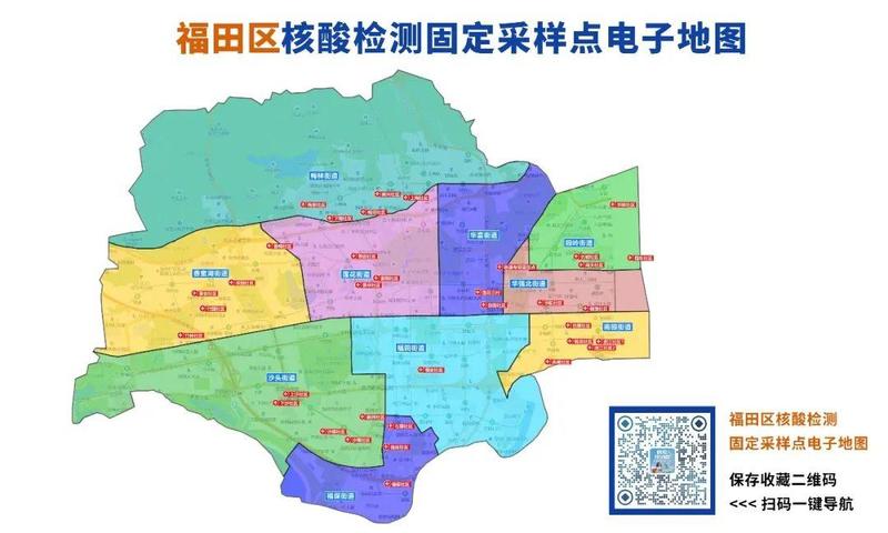 居民可以通过电子地图了解福田区全区的核酸检测固定采样点地址及采样时间。