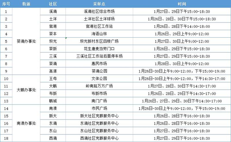 有更新!1月26日-1月30日大鹏新区免费核酸检测点安排→