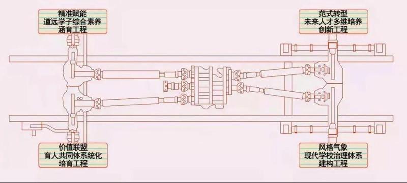 经反复研讨论证,学校研究制定出“全时四驱系统”——项目式推进“卓越学校”培育的行动计划。行动共包含四大工程,合计23个项目,清晰地描绘出培育卓越学校的“时间表”和“路线图”。