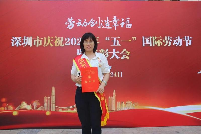 2020年,她被深圳市妇联授评“深圳市巾帼文明岗创岗活动先进个人”荣誉称号!2021年被深圳市总工会授予“深圳市五一劳动奖章”。